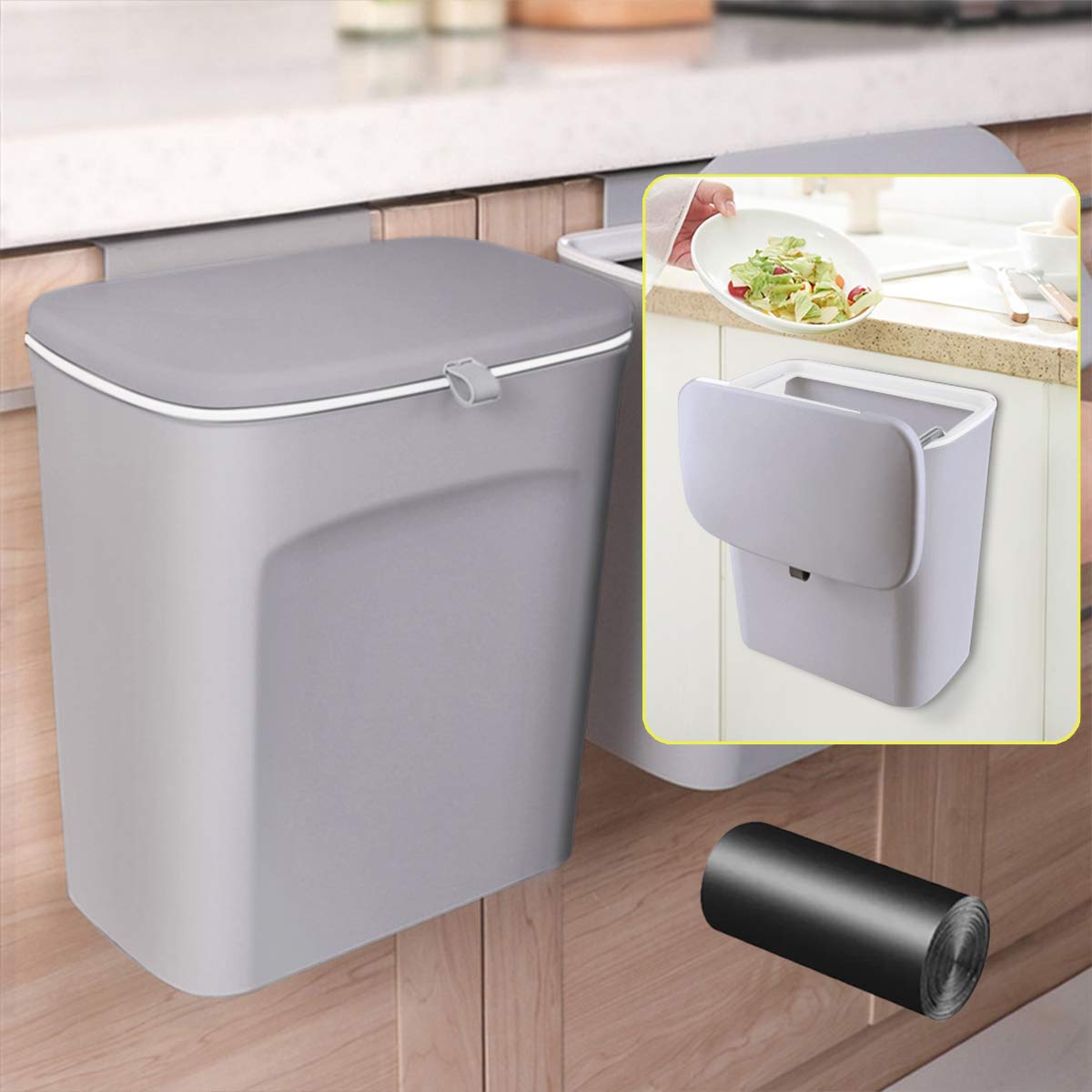 Space-saving: With limited kitchen space, every square inch counts. This hanging trash can is designed to maximize your kitchen’s available space by utilizing the often-unused area behind cabinet doors. It’s a practical solution for smaller kitchens or for those who prefer a clutter-free countertop.